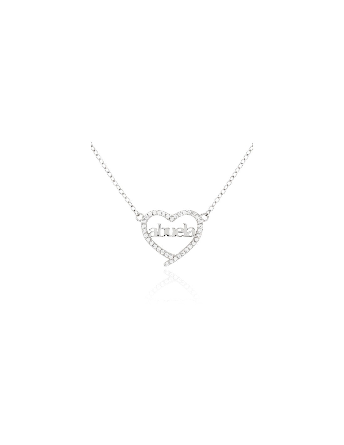 El mejor regalo para nuestras abuelas. Colgante de plata con circonitas en forma de corazón Abuela. Cadena de plata de ley rodiada 40 cm. + alargo de 5 cm. Entrepieza corazón con circonitas 14mm. x 12mm.