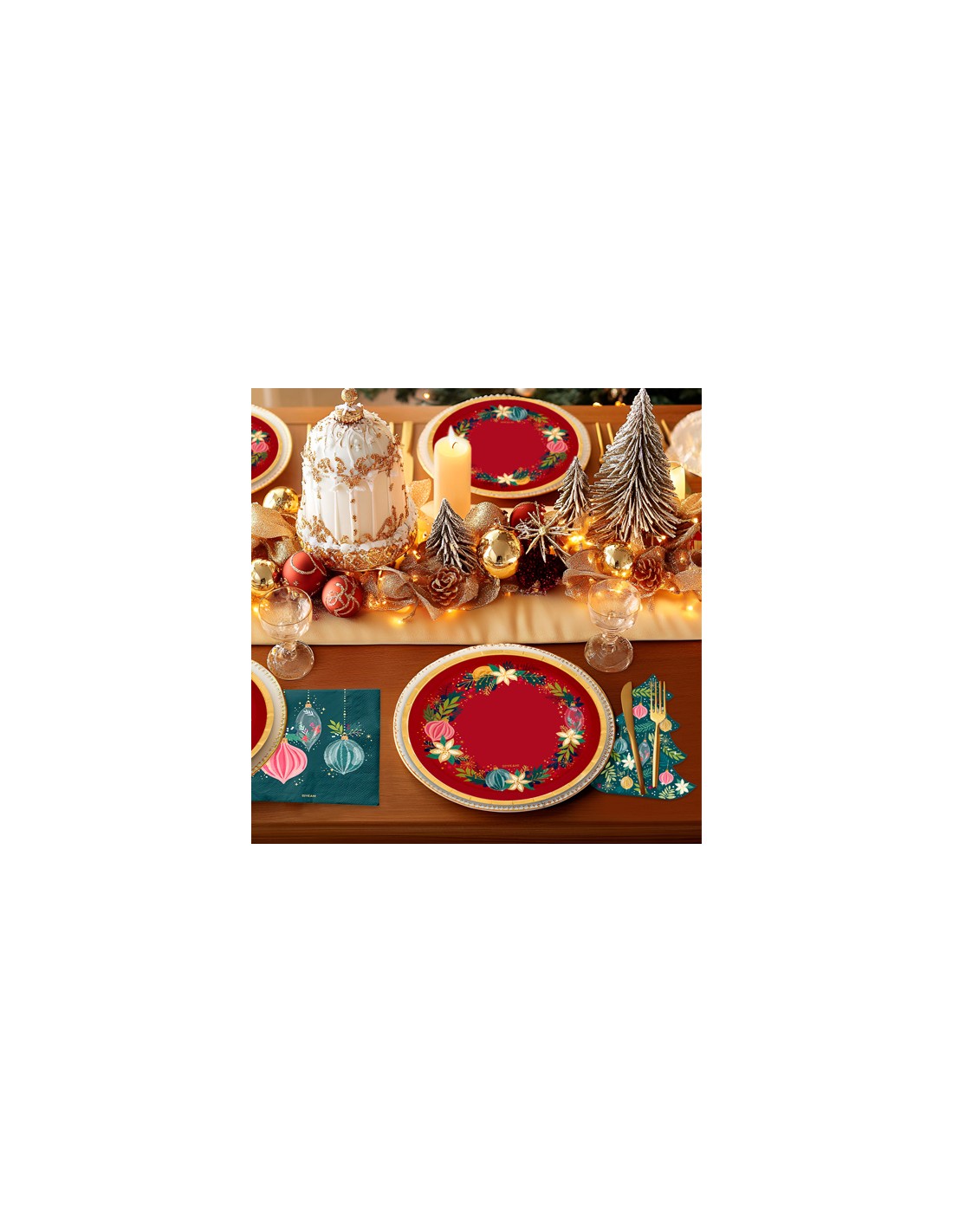 SET DE 6 PLATOS ROJO ADORNOS