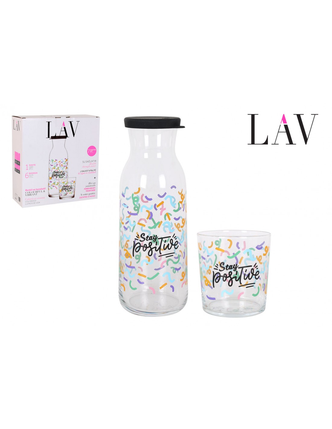 SET DE JARRA CON TAPA Y 6 VASOS STAY POSITIVE